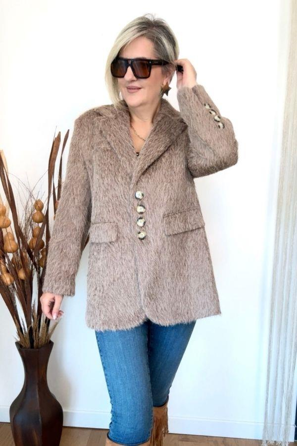 Bej Kırçıllı Gold Düğmeli Ceket (CKT-1111)