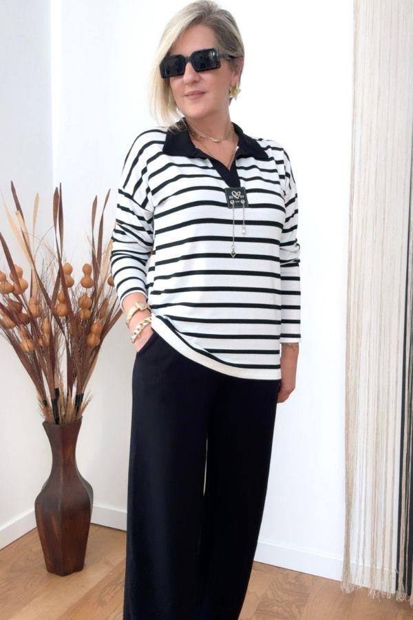 Siyah Çizgili Polo Yaka Eşofman Takım Beyaz Çizgili Polo Yaka Eşofman Takım