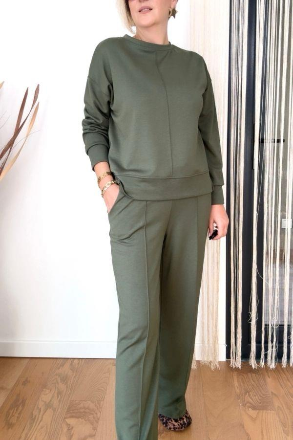 Haki Renk Önden Dikiş Detaylı Eşofman Takım