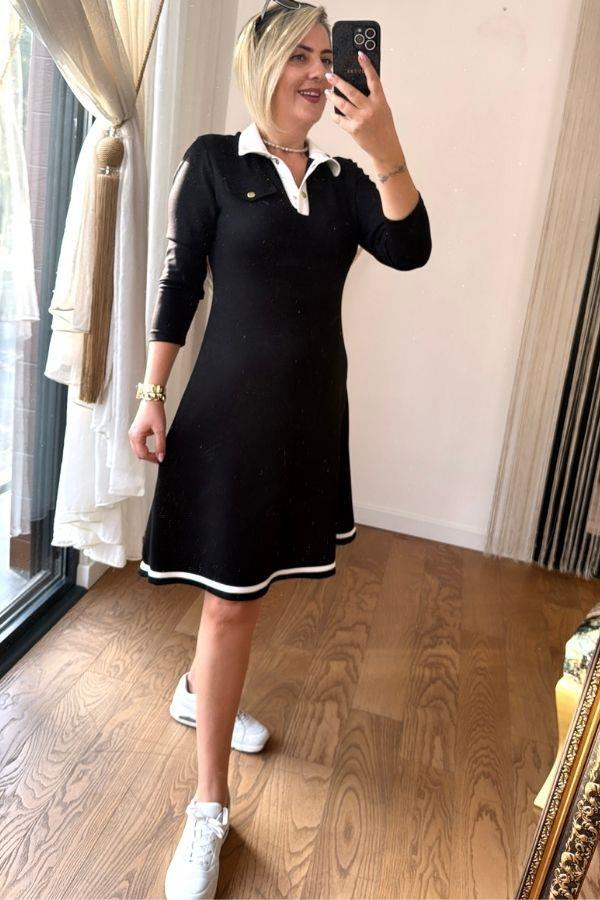 Siyah Polo Yaka Mini Elbise (ELB-2464)