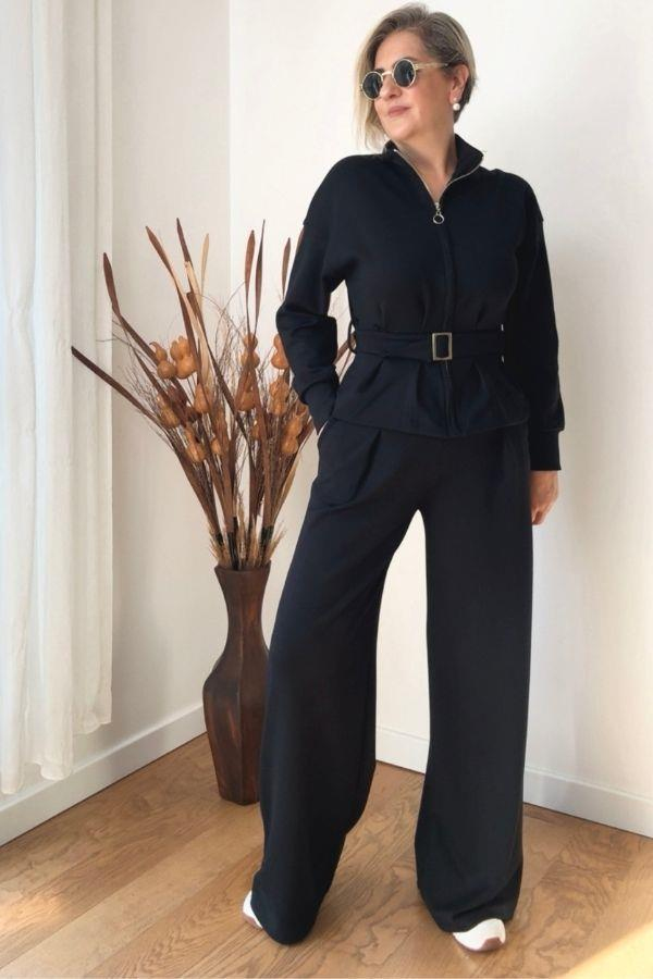 Siyah Renk Üstü Kemer Detaylı Alt Üst Takım