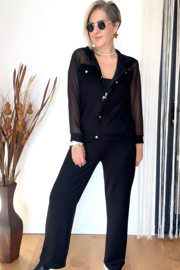 Siyah Tül Detaylı Alt Üst Eşofman Takım
